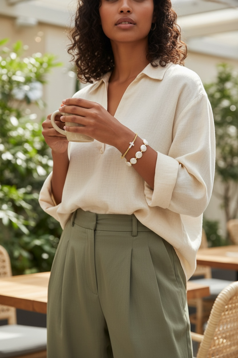 Handmade lovely bracelet set. Gold filled beads with Faux mother of pearl beads. Great set for a lady of style.